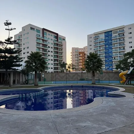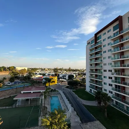 这家62平方米的公寓设有大厨房。 Cozy Loft With Air Conditioning And Wifi Near Poliforum Leon Gto的露台配有游泳池。 旅客在游泳池享受休闲的快感,使用健身中心。